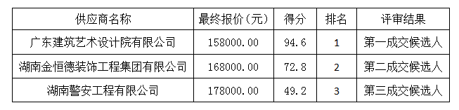 万搏体育的万搏体育食堂装饰装修项目设计服务采购竞争性磋商采购项目于 2019年07月26日结束,现将成交结果公告如下: