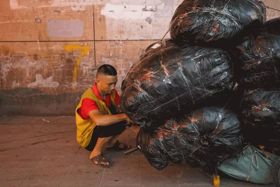 曹根初正把一袋袋服装打包运往环洲城