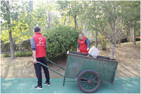 党员们和入党积极分子纷纷拿起打扫工具前往运动场周围的小树林、宿舍楼下的过道、篮球场周边等容易被忽视的“卫生死角”清除落叶、食品包装袋、水瓶等垃圾。大家分工合作、有条不紊,将几处场地打扫地干干净净。