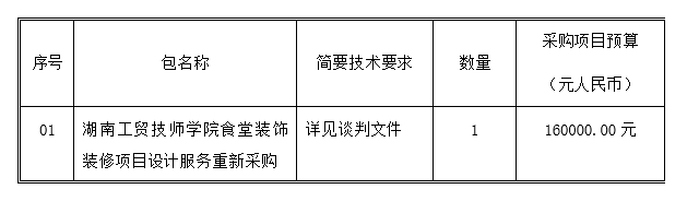 万搏体育食堂装饰装修项目设计服务重新采购项目(采购编号:202001)进行竞争性谈判采购,现采用发布公告方式,邀请符合资格条件的供应商提交证明材料参与资格审查活动。