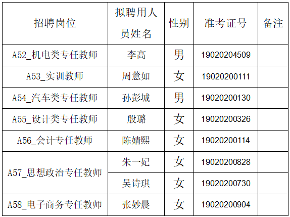 根据《2020年株洲市市直事业单位公开招聘(选调)工作人员公告》要求,通过公开报名、资格初审、笔试、资格复审、试讲、体检、政审考察等环节,经公开招聘工作领导小组研究,确定李高等8名同志为拟聘用人员,现予以公示。
