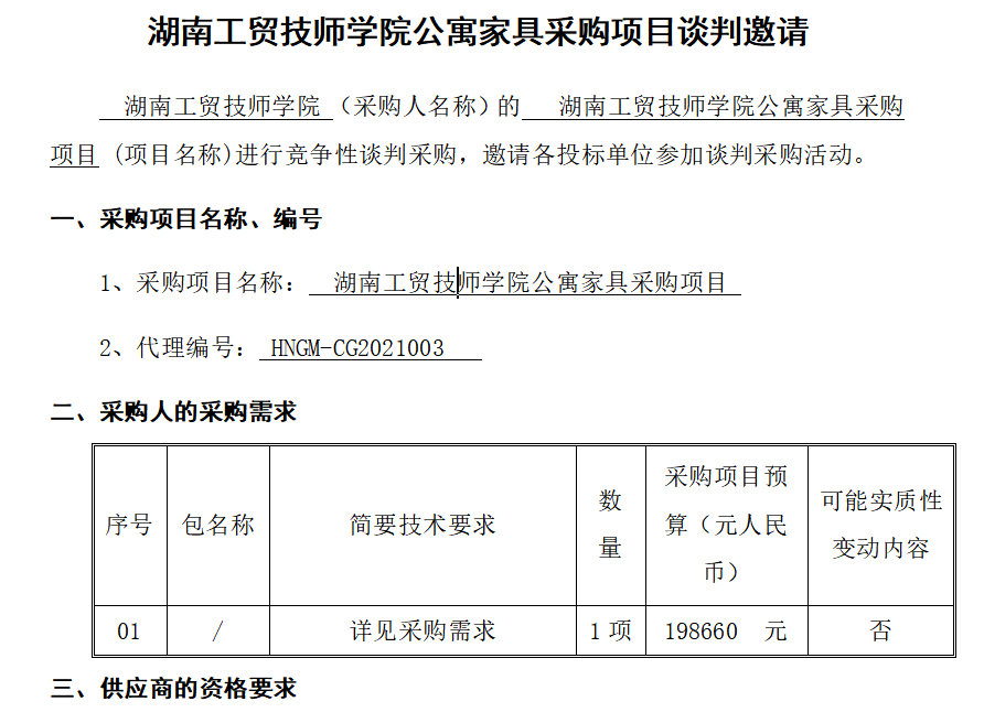 详情请下载:万搏体育公寓家具采购项目谈判邀请