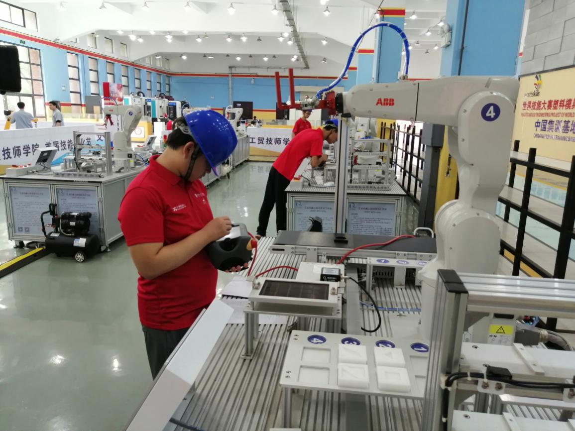 工业机器人技术项目赛区共有八名选手参加比赛,比赛项目为工业机器人的装配、分拣。经过紧张激烈的角逐,吴智杰荣获一等奖,雷漂和罗志军荣获二等奖,罗欣和雷斯宇荣获三等奖。