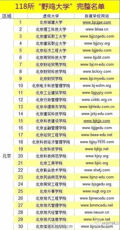 部分野鸡大学名单: