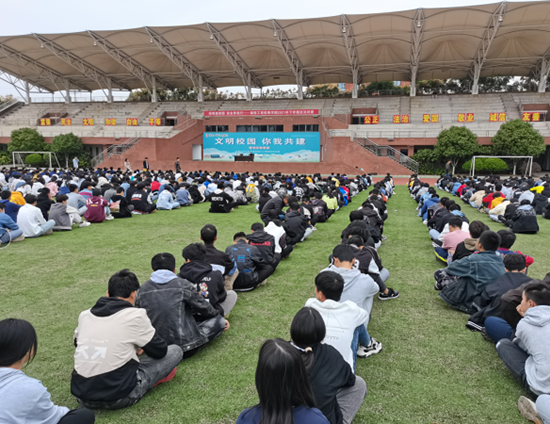 10月28日下午,万搏体育在运动场举行“法制进校园,安全伴我行”法治讲座活动,近5000名学生聆听了讲座。