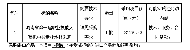 湖南省第一届职业技能大赛机电类专业耗材采购 竞争性谈判邀请