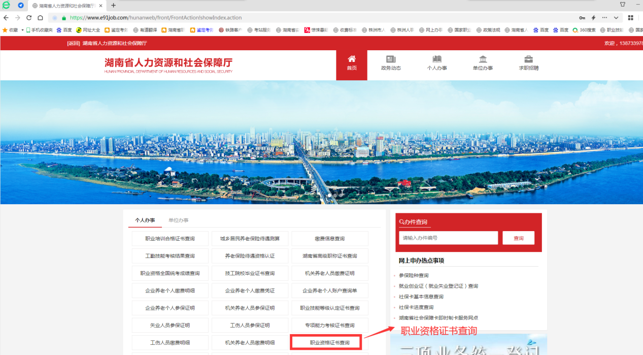 3、“个人办事”栏中选择“职业资格证书查询”;