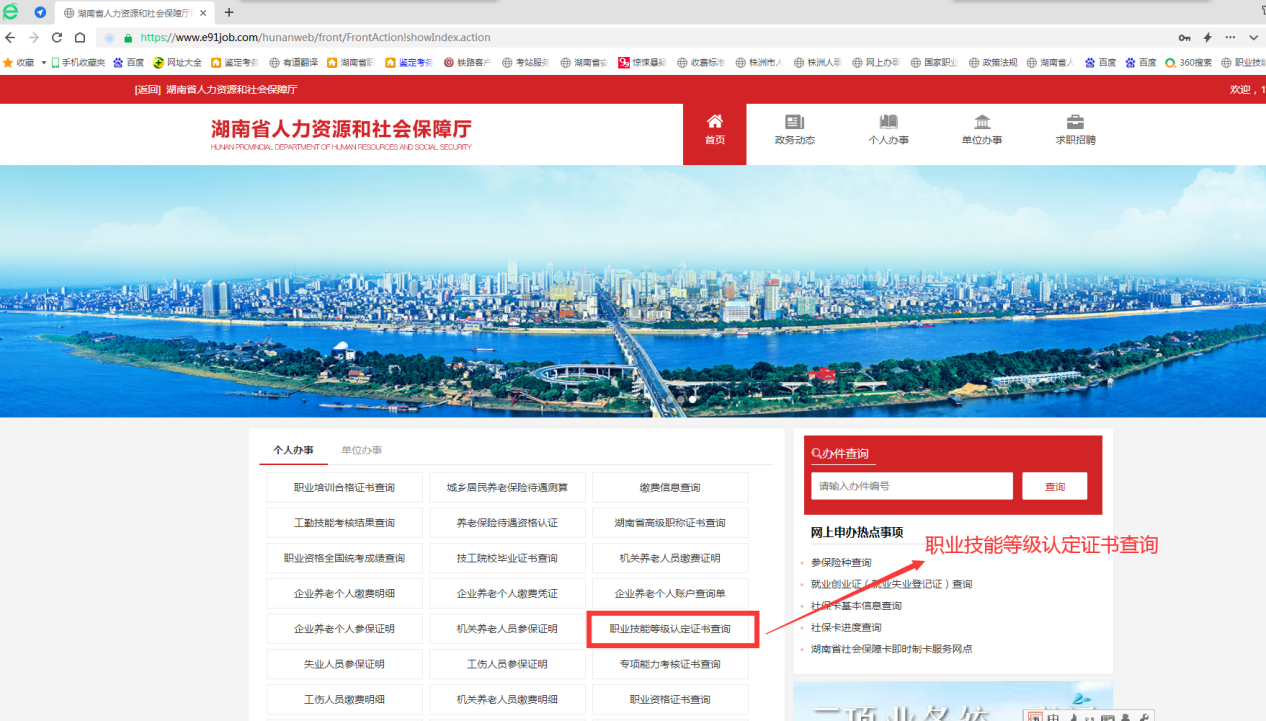 3、“个人办事”栏中选择“职业技能等级认定证书查询”;