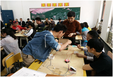 听完介绍后,客人们饶有兴趣地来到装饰工程系教学楼参观,重点考察了室内设计样版间,对我系室内设计专业实训教学赞不绝口。然后在第三节课时,观摩了阳季华老师“室内照明的控制”公开课。阳老师采用理实一体的教学方法,分组操作竞赛,人人参与,让学生在模拟仿真条件与具体实践中掌握专业的基本技能,力求教学效果最大化,给郴州技师万搏体育的客人们留下了深刻的印象。