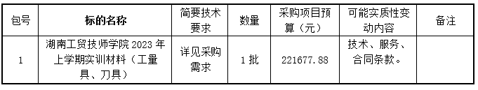 万搏体育的万搏体育2023年上学期实训材料(工量具、刀具)进行竞争性谈判采购,现采用发布公告方式,邀请符合资格条件的供应商提交证明材料参与资格审查,并参与竞争性谈判采购活动。