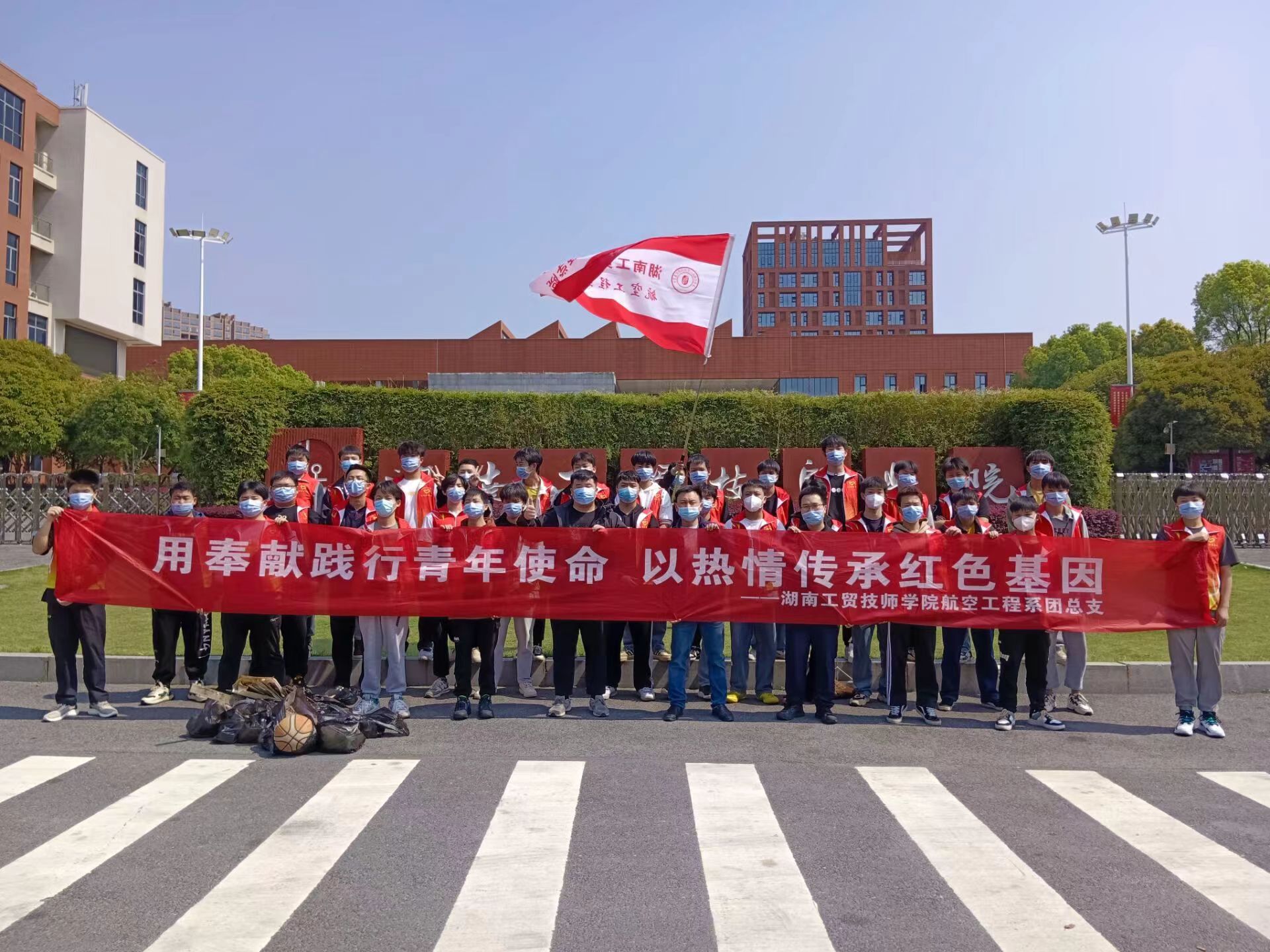 4月1日,万搏体育航空工程系团总支组织系部志愿者开展“践行青年使命,传承雷锋精神,弘扬时代新风”的美化校园活动。