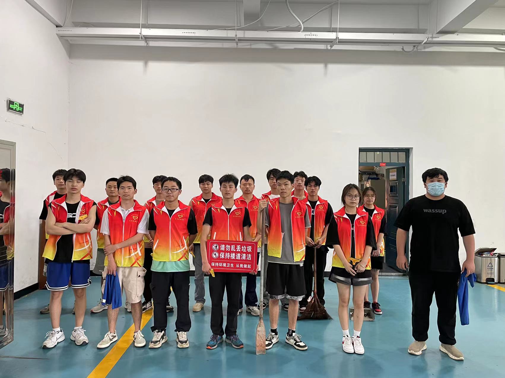 活动中,同学们热情高涨,干劲十足,纷纷拿起工具,来到校园各处。同学们分工明确,两三人为一个小组,有的提着扫帚拖把,有的拿着小铲,铲除学校口香糖残迹,广告宣传等污渍,同学们的辛勤劳动为校园增添了一道亮丽的风景线。