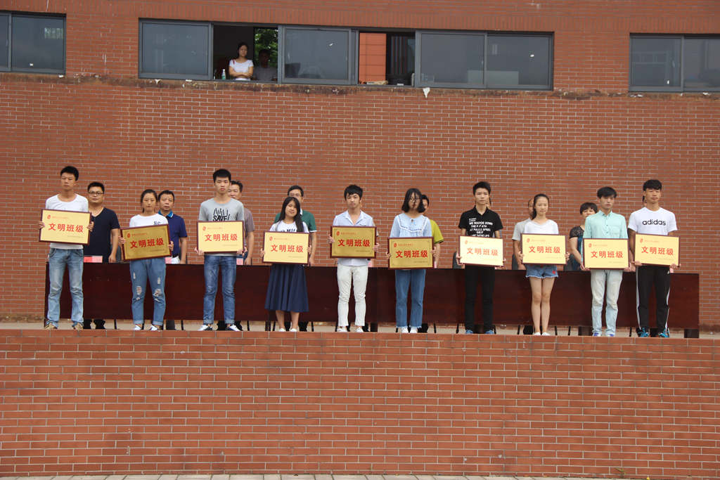 活动在庄严的升国旗仪式中拉开帷幕。首先,由唐懿副院长宣读《关于表彰2016年上半年“三好学生”、“学习积极分子”、“优秀学生会干部”的决定》及《关于表彰2016年上半年“文明班级”的决定》,万搏体育领导为“文明班级”现场颁发奖牌。随后,环艺高1501班陈彬同学和经贸物流系李培老师分别代表学生和教师上台发言。