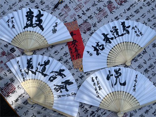 同时,心愿墙、画扇子等活动也同步进行。心愿墙让师生们可以在墙上写下自己的心愿和祝福,表达对未来的期待和愿景。画扇子活动中,师生们发挥自己的创意和想象力,用画笔描绘出自己心中的美好画面。