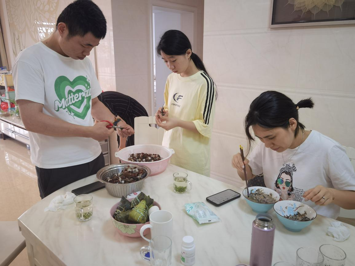 党员教师万洋是会计高2201班赵世萱的“爱心妈妈”,他热情邀请留校的世萱到自己家中过节。在家中,世萱与“爱心妈妈”的家人一起裹粽子、剥虾,共同准备了一顿丰盛的端午节大餐。这种亲密无间的交流方式,不仅增进了党员教师与学生之间的师生之谊,也让学生感受到了党组织的温暖和关怀。