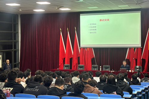 曾毓剑博士针对职场能力要求、职业适应过程、能力提升路径三个方面展开了讲解,激情的演讲拓宽了学生就业视野,激发了大家的学习热情,树立了大家正确的职业观。