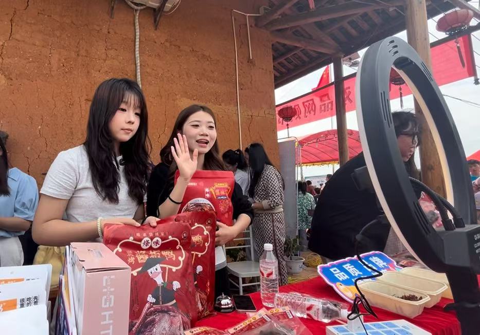 活动现场,师生们搭建直播间,化身带货主播为本土特色商品倾力推介。通过精准选品、创意直播等方式,为本地企业搭建线上销售新渠道,有效拓宽产品销路,攸县米粉、王石万黄辣椒、苗妹子豆制品等株洲双品好物受到众多消费者的喜爱,纷纷在线下单购买。
