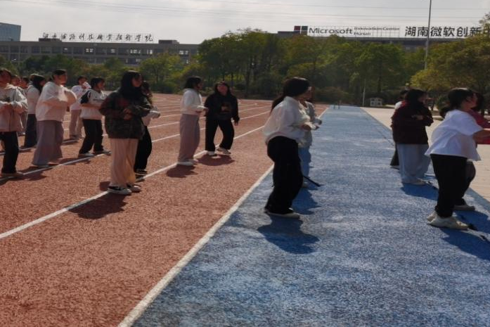 时间到了下午4点,我们的队伍旁边出现系主任的身影,万主任和马老师他们也时不时来篮球场指导我们训练,给我们合理的建议。最后几次合练,我们移师操场,顶着日光与烈阳,配合着开幕式的流程反复彩排。音乐声在空旷的操场上回荡,身影在舒展、跳跃、旋转,每一个动作都凝聚着连日来的付出。当最后一个音符落下,队伍摆出预设的造型,所有的疲惫都烟消云散,只剩下满满的成就感。