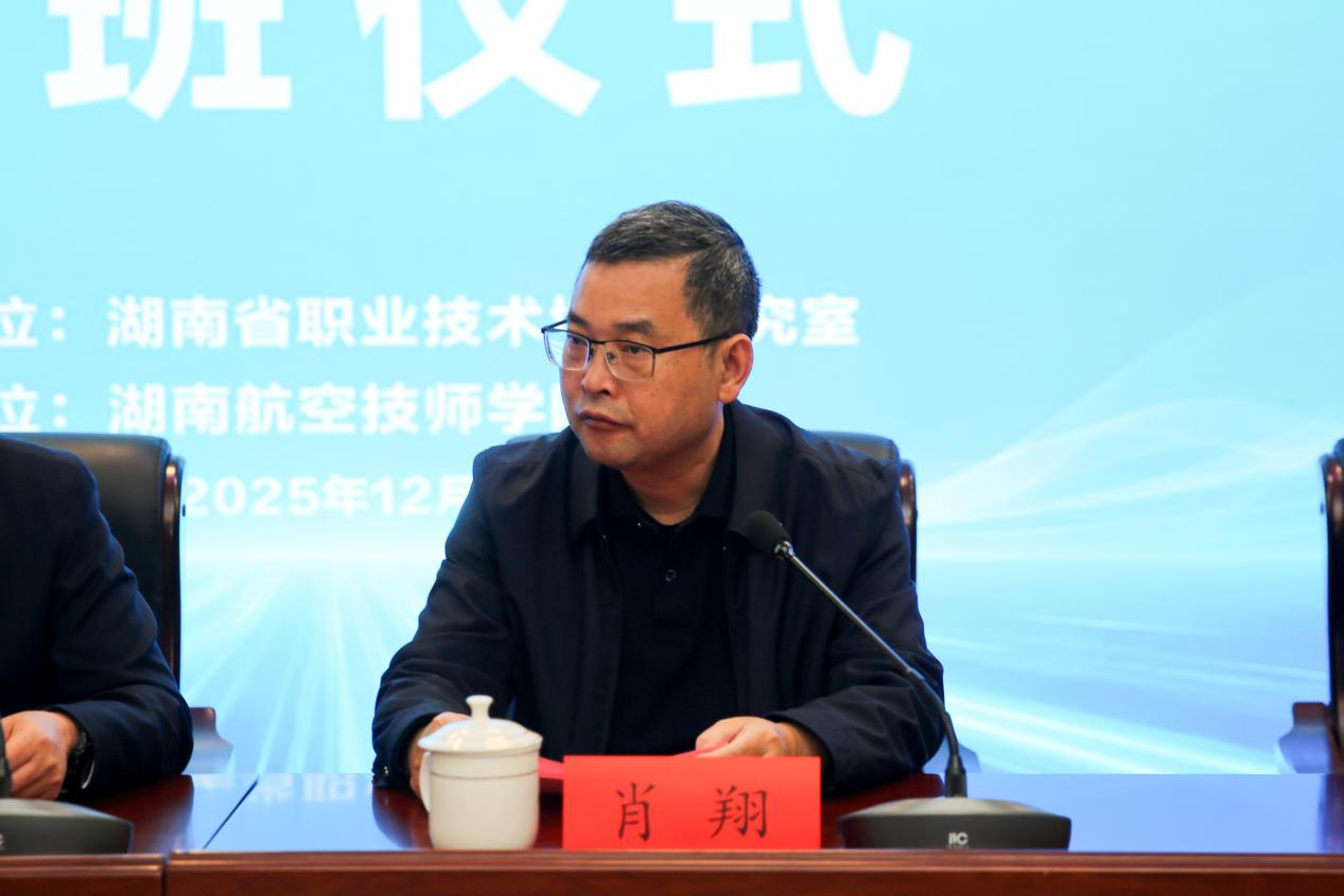 本次开班仪式由省人社厅职业技能鉴定中心(职业技术培训研究室)蔡宏亮部长主持,省人社厅职业技能鉴定中心副主任欧雁、万搏体育党委副书记肖翔、人社部工学一体化培训专家陆建军教授出席仪式。