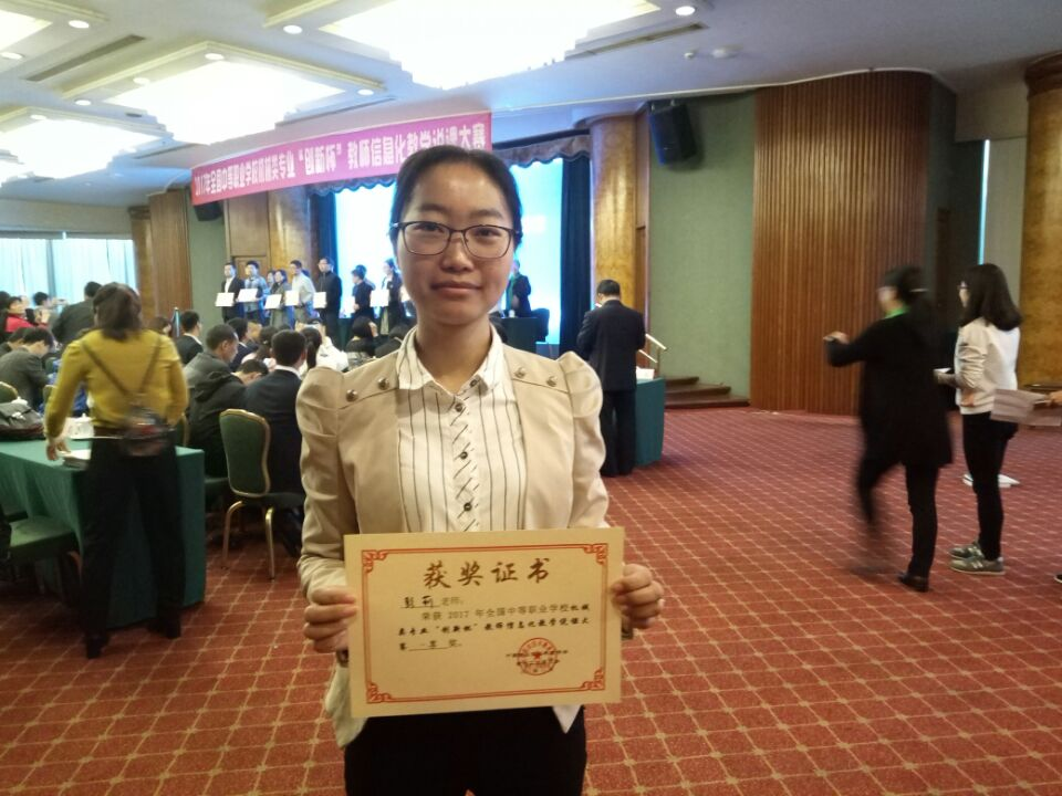 2017年11月,我校教师彭莉代表湖南省赴广西南宁参加了2017年全国中等职业学校 “创新杯”教师信息化教学设计和说课大赛,从来自全国职业学校的选手中脱颖而出,荣获一等奖。