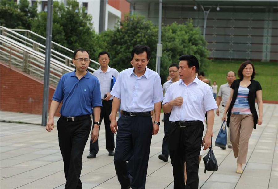 张立新司长(前中)在毛朝晖副市长(前左)、陈院长陪同下参观校园