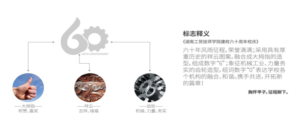 4、中间文字部分点明了标志主题:万搏体育60周年校庆。