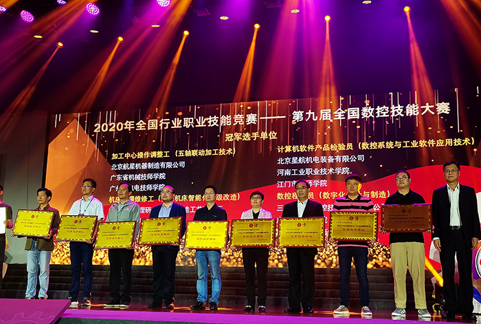 数控技能大赛自2004年创办以来,每两年举办一届,已成为国内先进数控技术传播的重要平台,在培养和选拔数控高技能人才中发挥了重要作用。大赛以“赛技能、育工匠、创未来”为主题,设置五轴联动加工技术、数控机床智能化升级改造、数控系统与工业软件应用技术、数字化设计与制造等四个赛项,分职工组、教师组、学生组三个组别。在3天的比赛中,来自全国31个省(区、市)及机械行业的近500名选手顽强拼搏、奋勇争先,充分体现了我国制造业技能人才精益求精、追求卓越的工匠精神。按照奖励规定,获得职工组、教师组全国单人赛项前5名、双人赛项前3名的46名选手,经人力资源社会保障部核准,将被授予“全国技术能手”称号,颁发奖章、奖牌和证书。