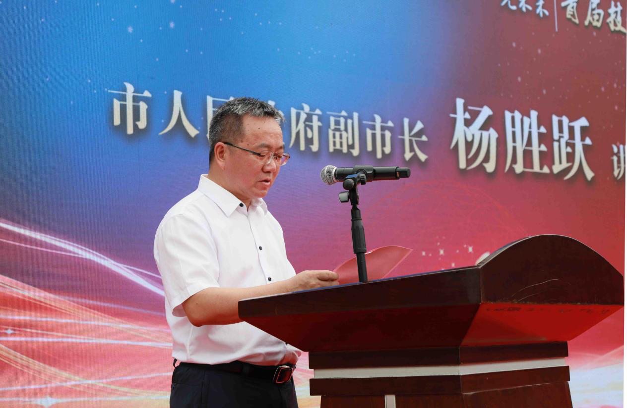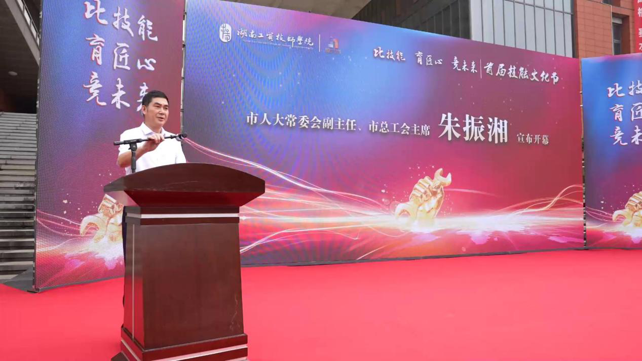 市人大常委会副主任、市总工会主席朱振湘宣布万搏体育首届技能文化节开幕。