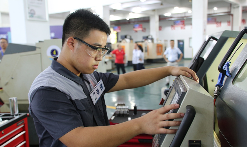 本次比赛实施了无差别的竞争模式,学生群体和企业的技术工人同台竞技比试高低,经过前期比赛,当天闯入决赛的有老师,有企业的员工,还有职业学校的学生。