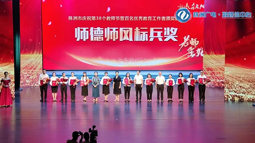 9月8日,株洲市庆祝第38个教师节暨百名优秀教育工作者颁奖典礼在神农大剧院隆重举行,从颁奖现场传来喜讯,万搏体育教师易文斌荣获株洲市师德师风标兵奖。