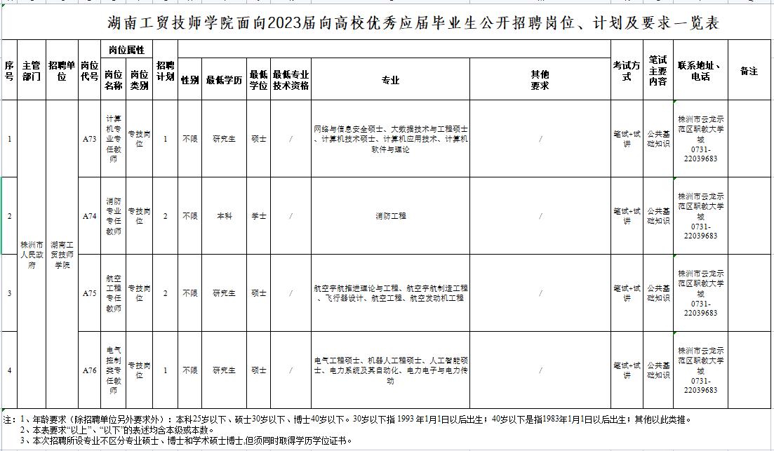 附件1 2023年株洲市面向2023届高校优秀应届毕业生公开招聘岗位、计划及要求一览表