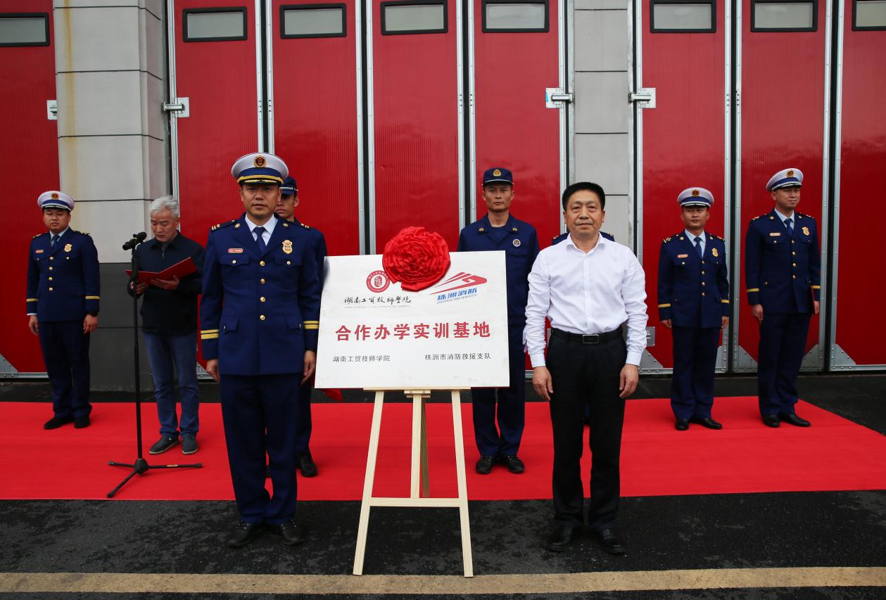 4月14日,万搏体育与株洲市消防救援支队校外实训基地在职教城消防站揭牌,标志着双方合作办学迈入新的阶段。万搏体育党委书记张格林,市消防救援支队党委书记、政治委员谷小波,市消防救援支队副支队长邹联盟等出席,万搏体育党委委员、副院长皮步安主持揭牌仪式。