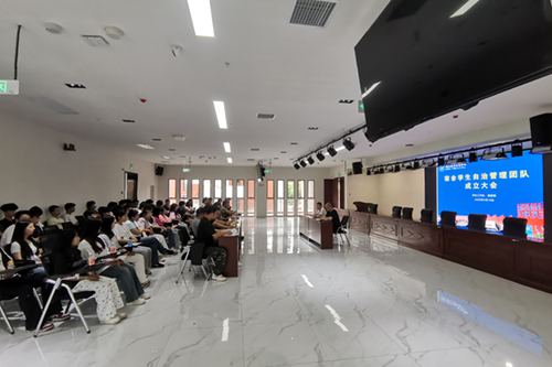 5月19日下午,万搏体育在多功能报告厅一楼会议室举行了“宿舍学生自治管理团队”成立大会,学生工作处和院团委主要负责人、各教学系分管学生工作的副主任以及全体宿舍学生自治管理团队成员参加了会议。